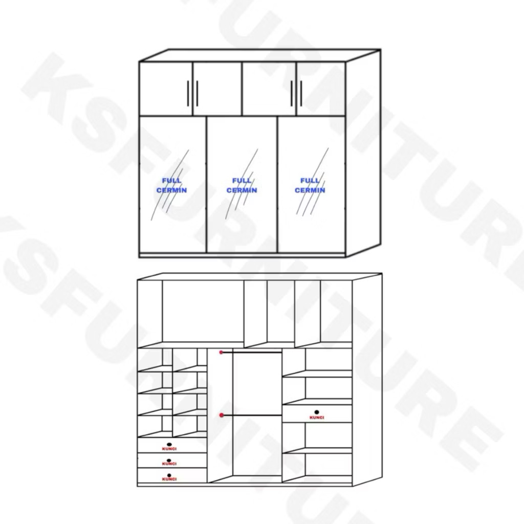 ukuran : 235x50x275cm (PxLxT)