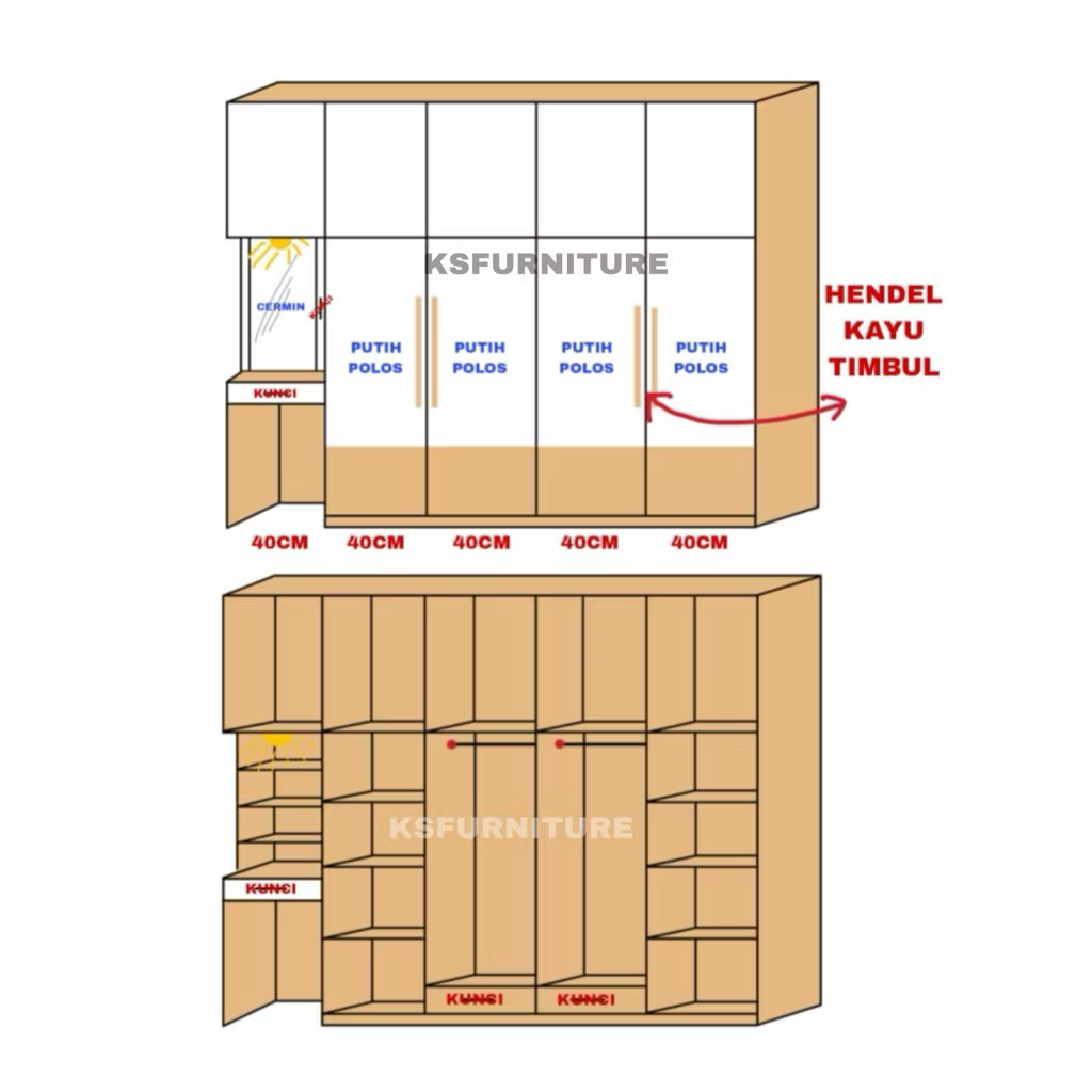 ukuran : 220x40x295cm (PxLxT)
